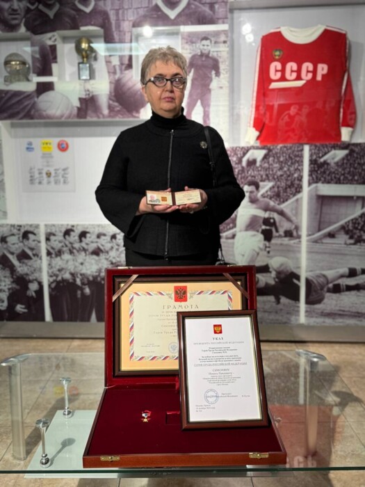 — Награду и документы дочери Никиты Павловича, Виктории Симонян, передал генеральный секретарь РФС Максим Митрофанов. Герой Труда — высшая степень отличия за особые трудовые заслуги перед государством и народом, — говорится в сообщении.